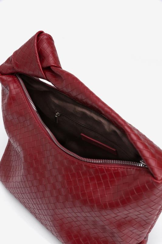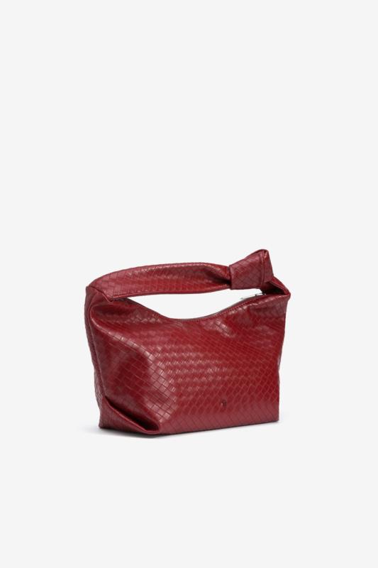 Bolso rojo trenzado.