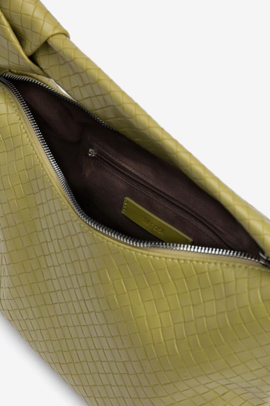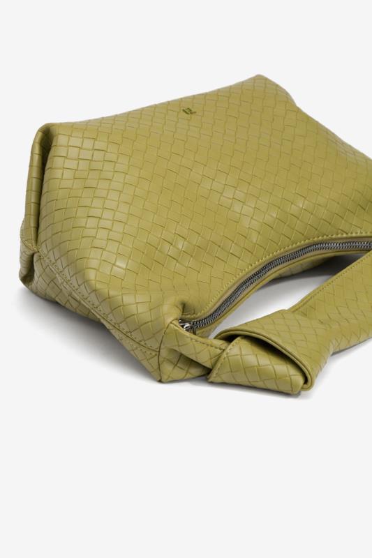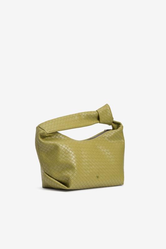 Bolso verde trenzado.
