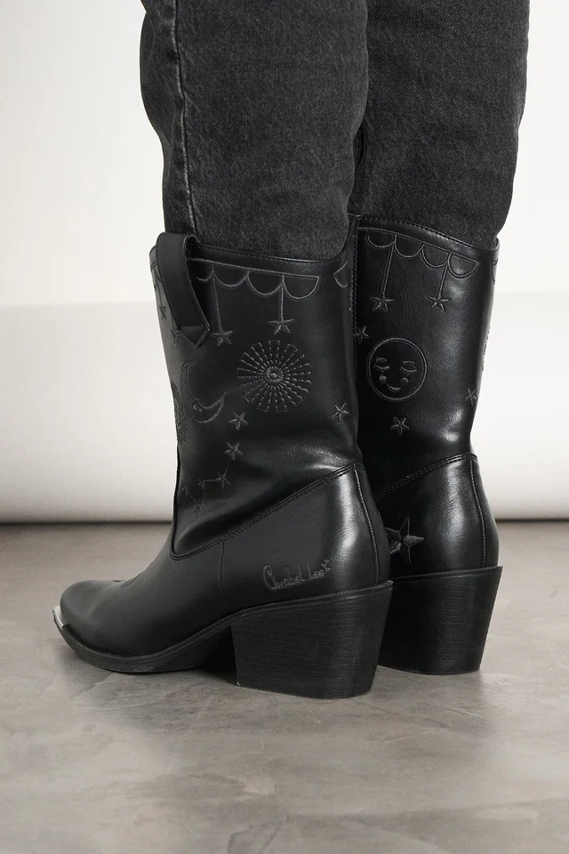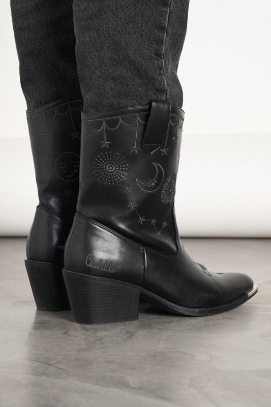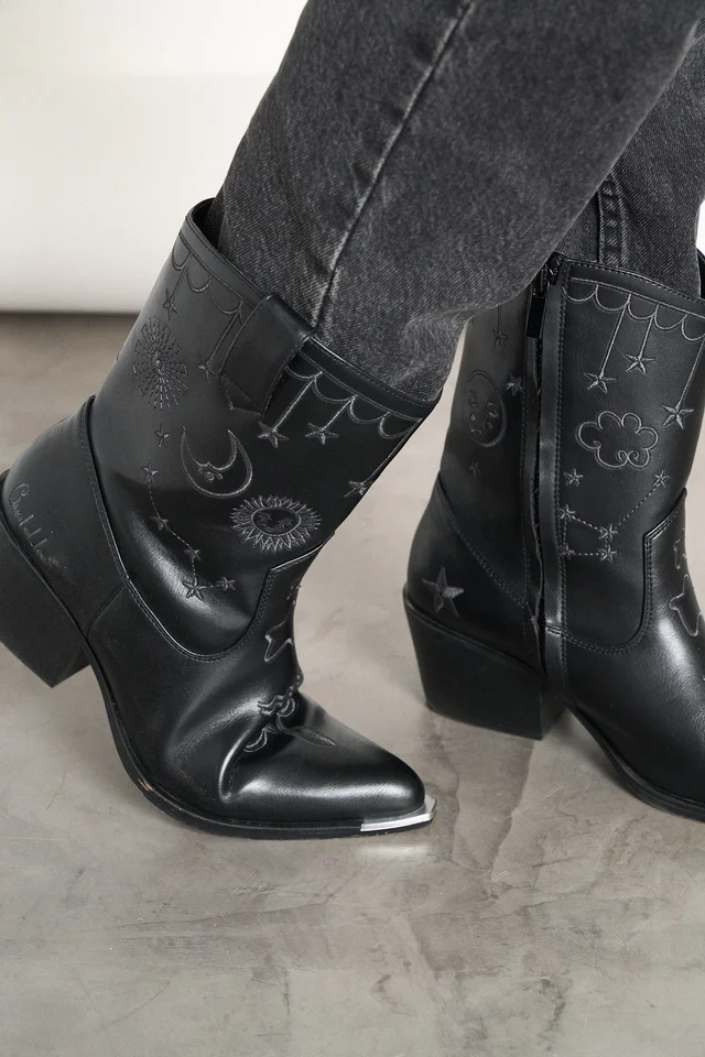 Botín negro de piel sintética.