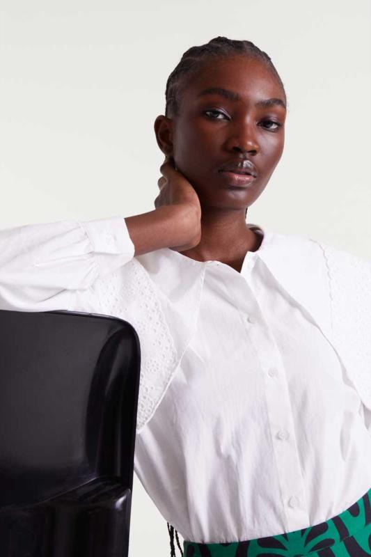 Camisa blanca con maxi cuello.