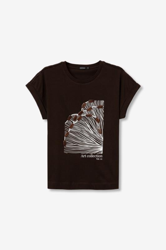 Camiseta chocolate con estampación frontal.