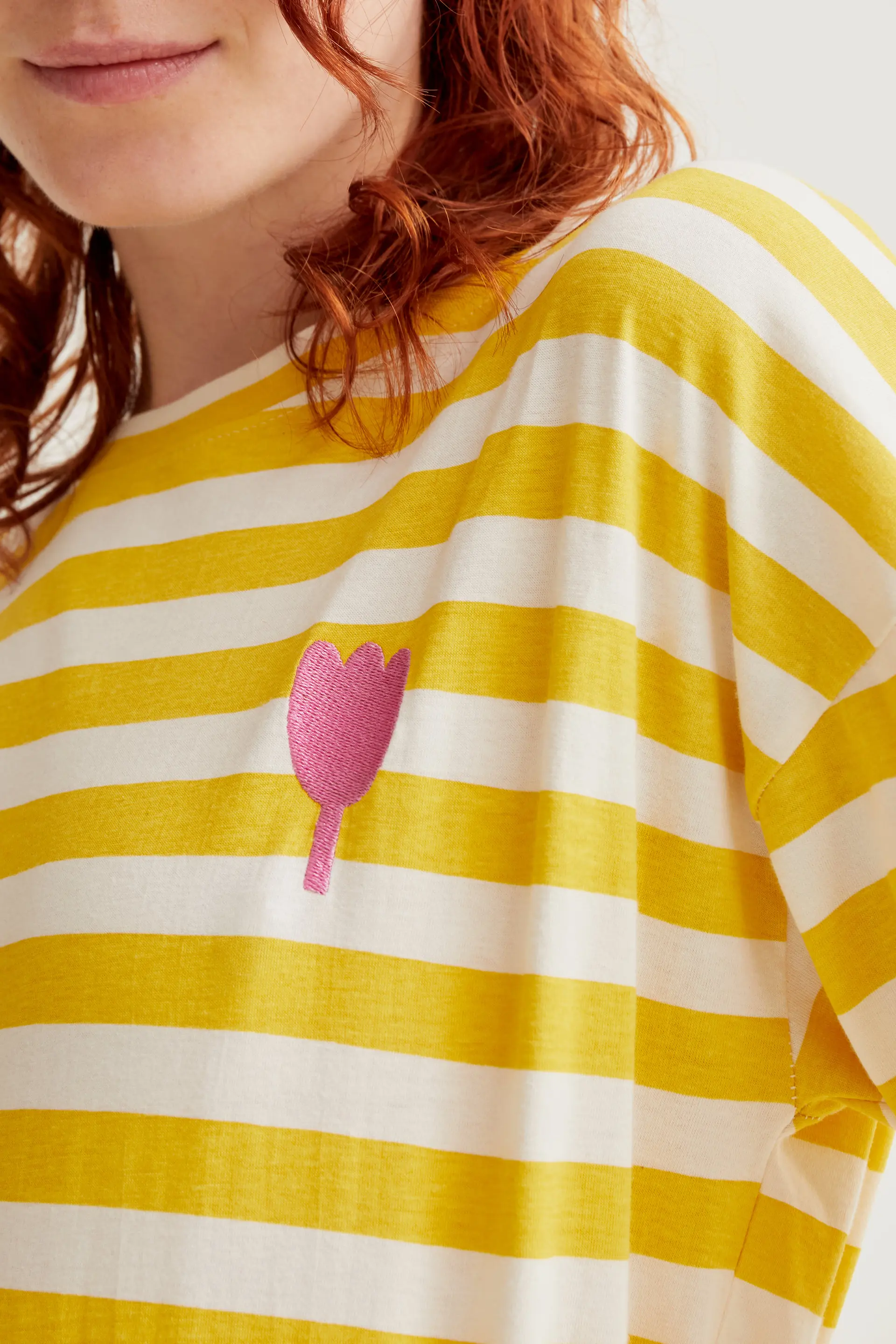 CAMISETA RAYAS AMARILLAS Y TULIPÁN