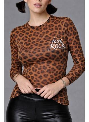 Camiseta de manga larga de tul, con estampado de animal print.