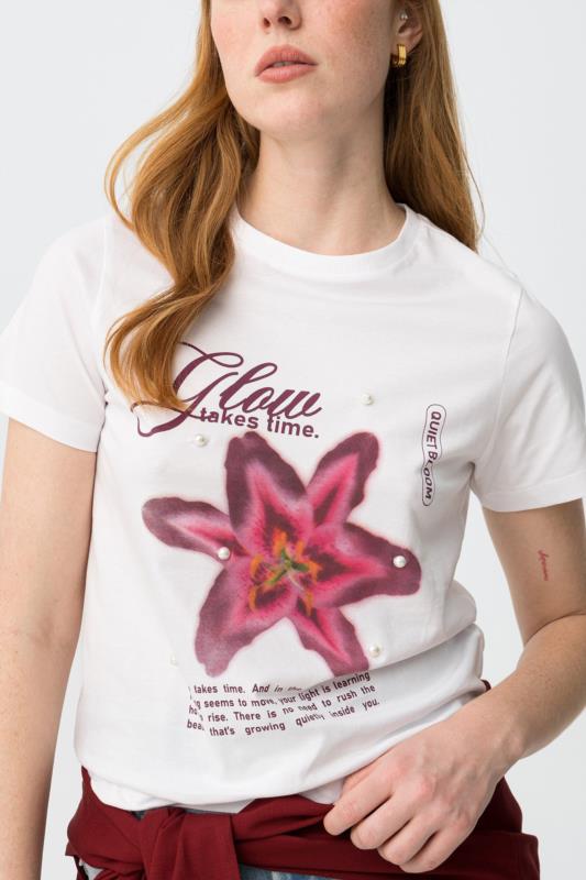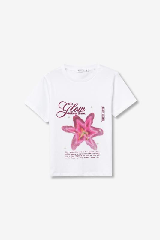 Camiseta blanca con estampado frontal.